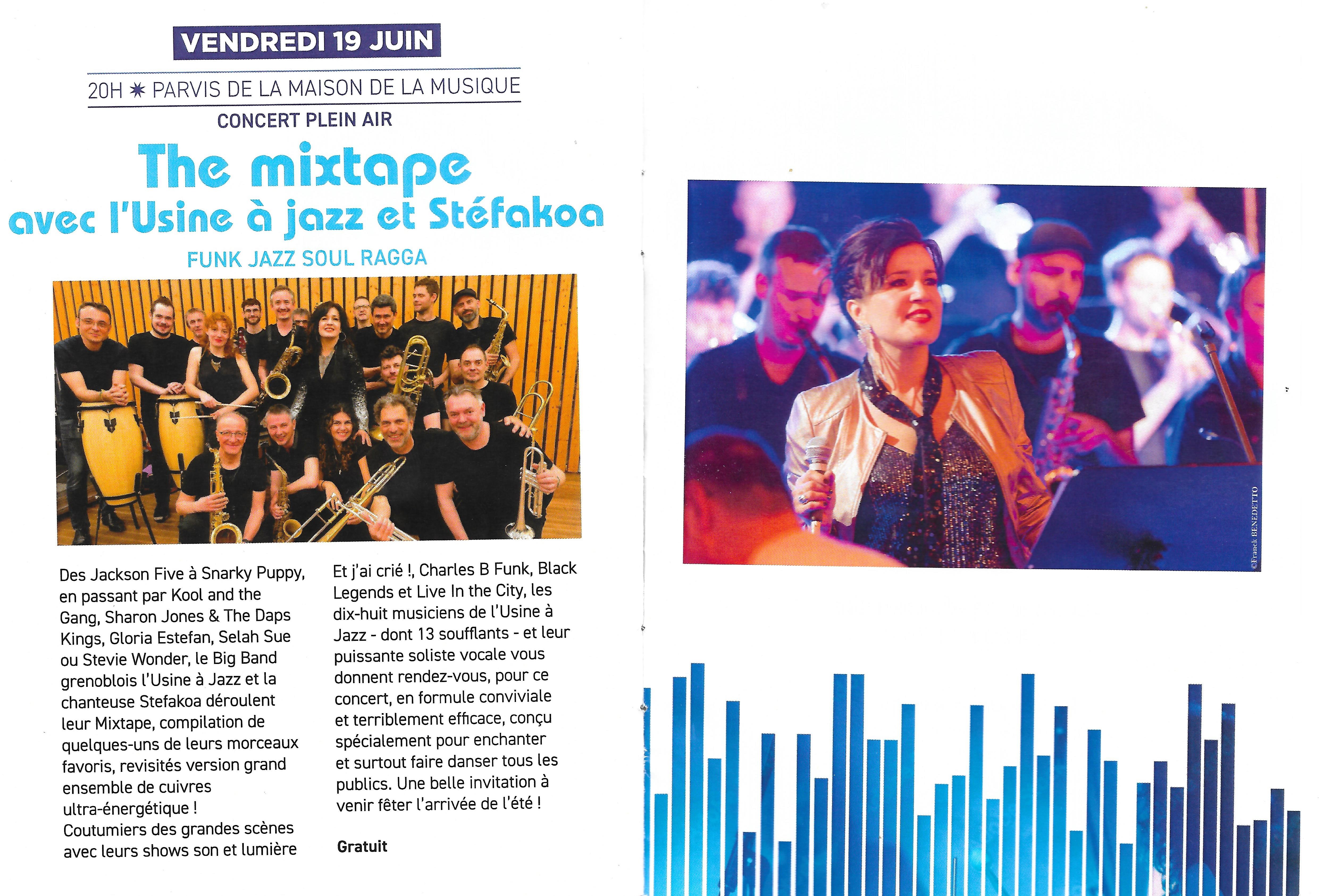 L'Usine invite la chanteuse Stefakoa, pour un concert programmé par le Voiron Jazz Festival 2019, en partenariat avec le Rotary Club de Voiron, au profit des enfants du Jules Ferry Brass Band (financement de leur voyage à la Nouvelle Orléans).